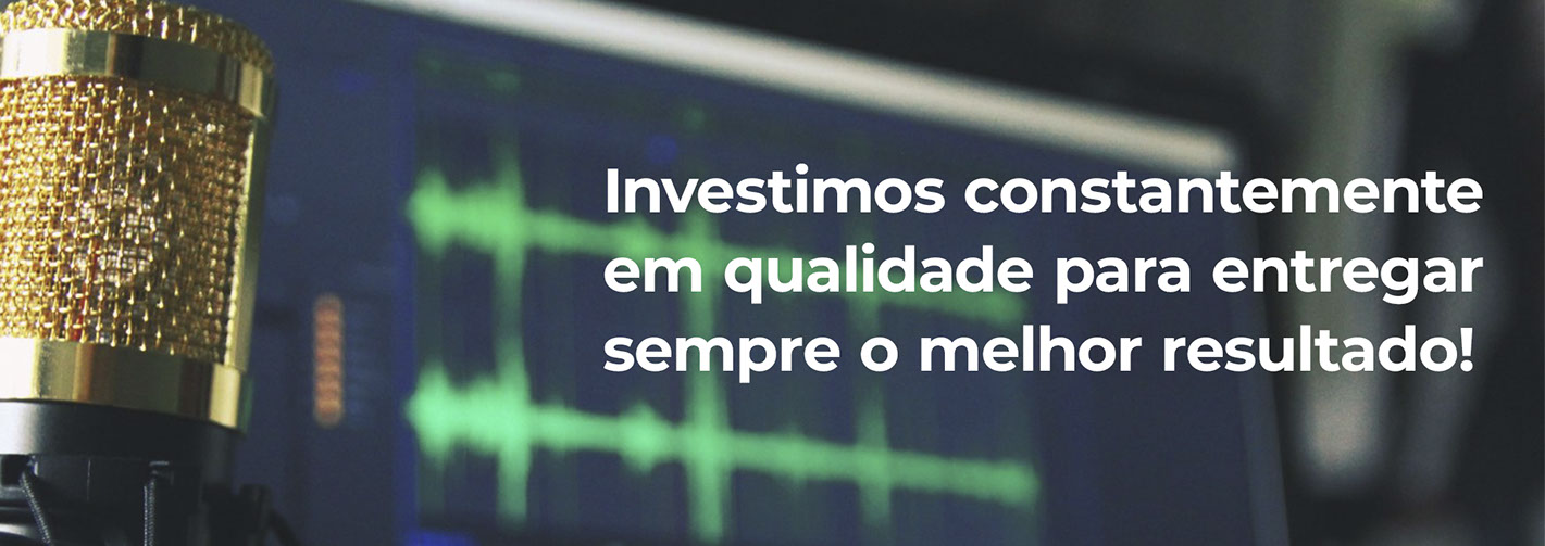 Investimos constantemente em nossos equipamentos e procuramos nos atualizar nas práticas mais atuais em locução e produção de áudio. Contamos com um time de profissionais com grande experiência no mercado que nos dá a garantia de uma entrega rápida com qualidade!